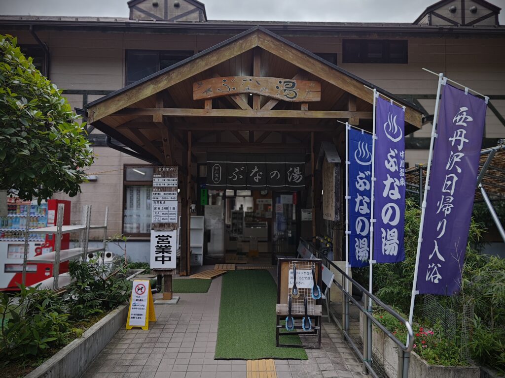 本当は信玄館の日帰り温泉を利用しようと考えていましたが、11:30オープンで少し早かったので町営のぶなの湯に変更しました。歩いて5分程度なので温泉の泉質に変わりはないので施設の状態だけが問題でした。