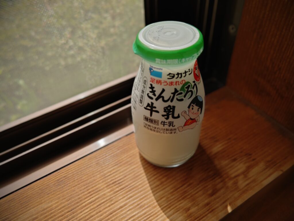 温泉に来たので当然のことながら牛乳を飲みました。『きんたろう牛乳』という珍しい牛乳でした。