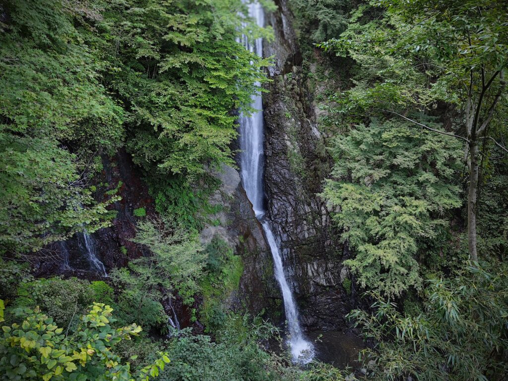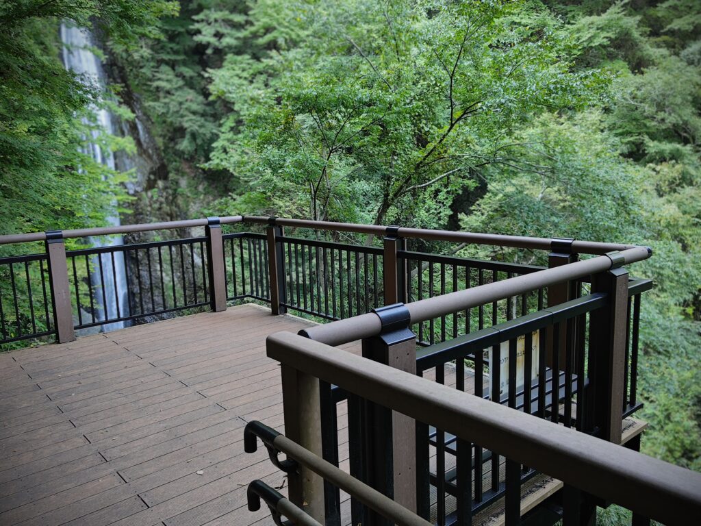 基本的には滝だけなので、駐車場からの徒歩と見学で長くて30分程度、軽食喫茶が一軒ありましたのでそれを入れても1時間が滞在時間でしょう。