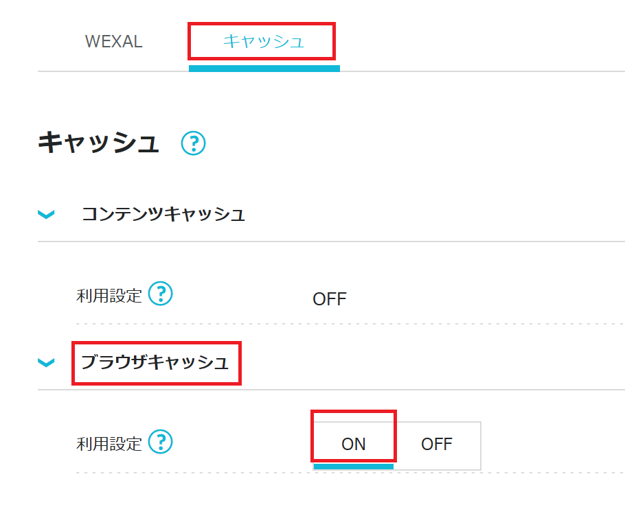 コンテンツキャッシュはWEXALを選択すると自動的にOFFになります。