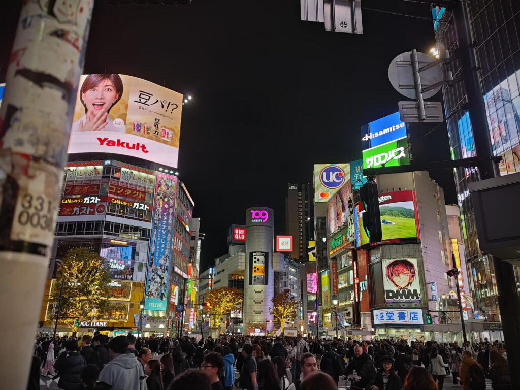 ようやく渋谷駅に到着しました。こちらはスクランブル交差点です。渋谷駅は工事中のため遠回りしなければならないことと人混みの関係で、撮影は止めることにしました。約1時間でしたがいい運動になりました。